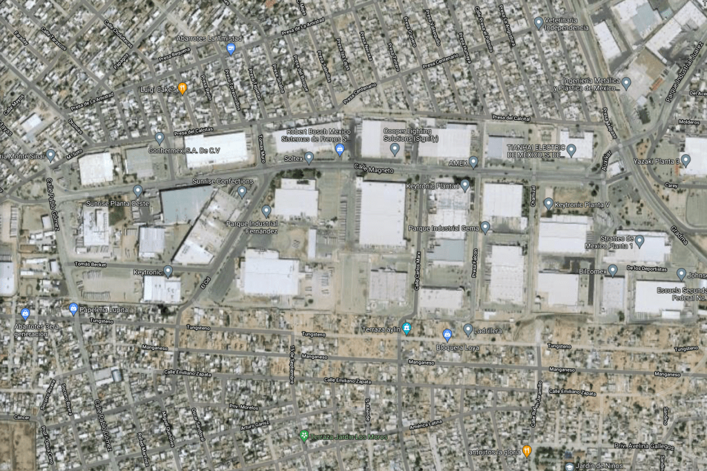 Parque Industrial Omega, Ciudad Juárez, tomado de Google Earth.